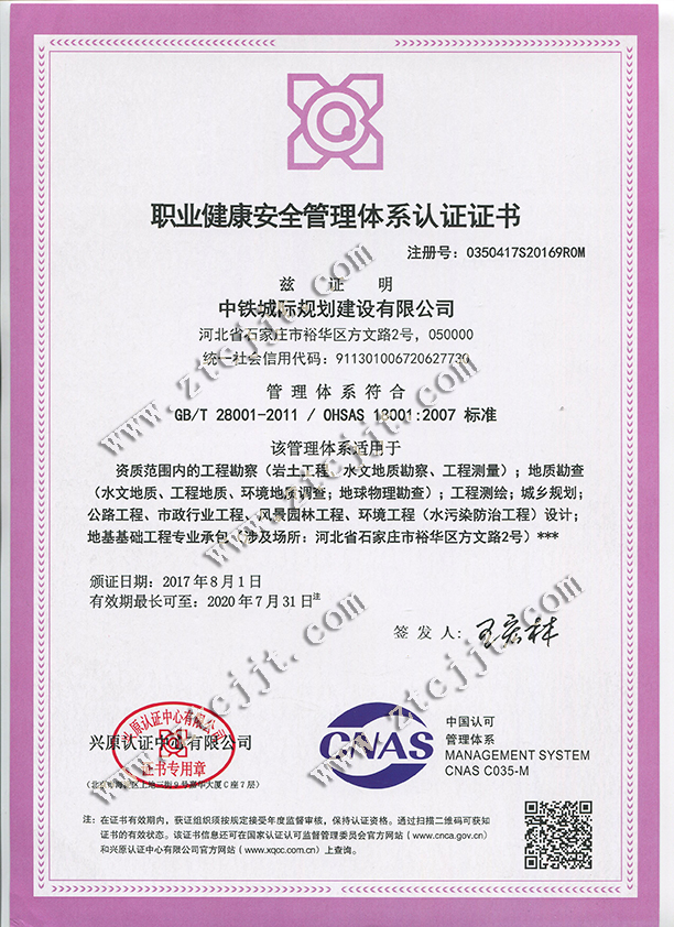 2017年8月1日,公司順利取得興原認(rèn)證中心認(rèn)證的“質(zhì)量、環(huán)境、職業(yè)健康安全三大管理體系證書”。