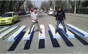 石家莊首條3D斑馬線亮相,老司機也“忍不住”剎一腳