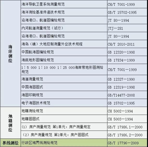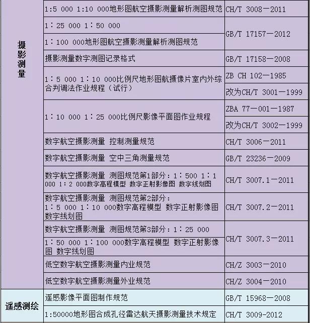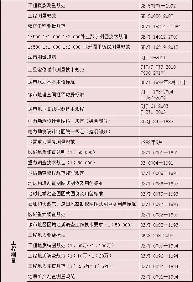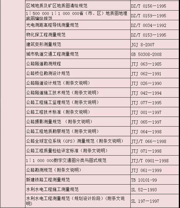測(cè)繪專(zhuān)業(yè)國(guó)家及行業(yè)標(biāo)準(zhǔn)匯總