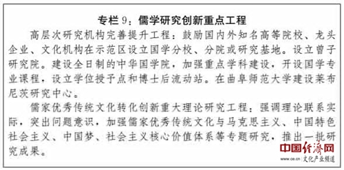 (一)建設高層次研究機構。加快打造世界儒學研究交流中心,提升文獻收集、信息共享、學術研究、人才培養、博物展覽等綜合功能,使我國在東亞儒家文化圈中居于主動,在世界儒學傳播和研究中始終保持充分話語權。以孔子研究院、孟子研究院為引領,依托山東大學、山東師范大學、曲阜師范大學、濟寧學院、山東社科院等院校,建立完善儒學專門研究機構體系。發揮中國孔子基金會作用,探索建設中國儒學中心。堅持馬克思主義立場、觀點、方法,采取歷史唯物主義態度,與理論工作“四大平臺”建設相銜接,結合時代要求推動儒家優秀傳統文化創新發展。實施儒家優秀傳統文化轉化創新重大理論研究工程,突出理論與實際相結合,加強相關重點學科專業建設,承擔更多國家級和省部級研究項目,重視保護和發展具有重要文化價值和傳承意義的“絕學”、冷門學科。提升《孔子學刊》《孔子文化季刊》等儒學研究期刊辦刊水平,薈萃國內外各儒家學派最新理論研究成果,推動多語種出版發行,打造成為集成共享的創新成果高端平臺。