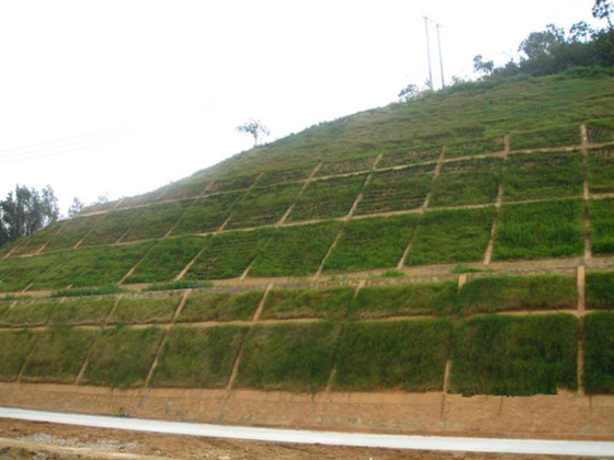 經過采用極限平衡法、數值分析方法對邊坡穩(wěn)定性進行分析計算,得出保證高邊坡穩(wěn)定所需要的錨固力。通過在坡體內施工預應力錨索、打入一定數量的系統(tǒng)錨桿(土釘)或注漿加固對邊坡進行處治。系統(tǒng)預應力錨索為主動受力,單根錨索設計錨固力可高達3000KN,是高邊坡深層加固防護的主要措施。系統(tǒng)錨桿(土釘)對邊坡防護的機理相當于螺栓的作用,是一種對邊坡進行中淺層加固的手段。根據滑動面的埋深確定邊坡不穩(wěn)定塊體大小及所需錨固力,一般多用預應力錨(索)桿有針對性的進行加固防護。為防治邊坡表面風化、沖蝕或弱化,主要采取植物防護、砌體封閉防護、噴射(網噴)混凝土等作為坡面防護措施。