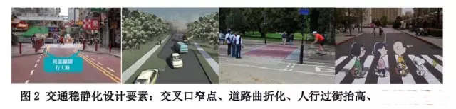 因此,在城市支路級別道路改造中,我們引入了城市交通穩(wěn)靜化(Traffic calming)理念,通過壓縮機動車道寬度、設(shè)置道路線型曲折化、縮小轉(zhuǎn)彎半徑以及路面鋪裝材料變化等措施,減少社區(qū)穿越性交通,實現(xiàn)對車速的管控,以保障居民出行及活動安全。