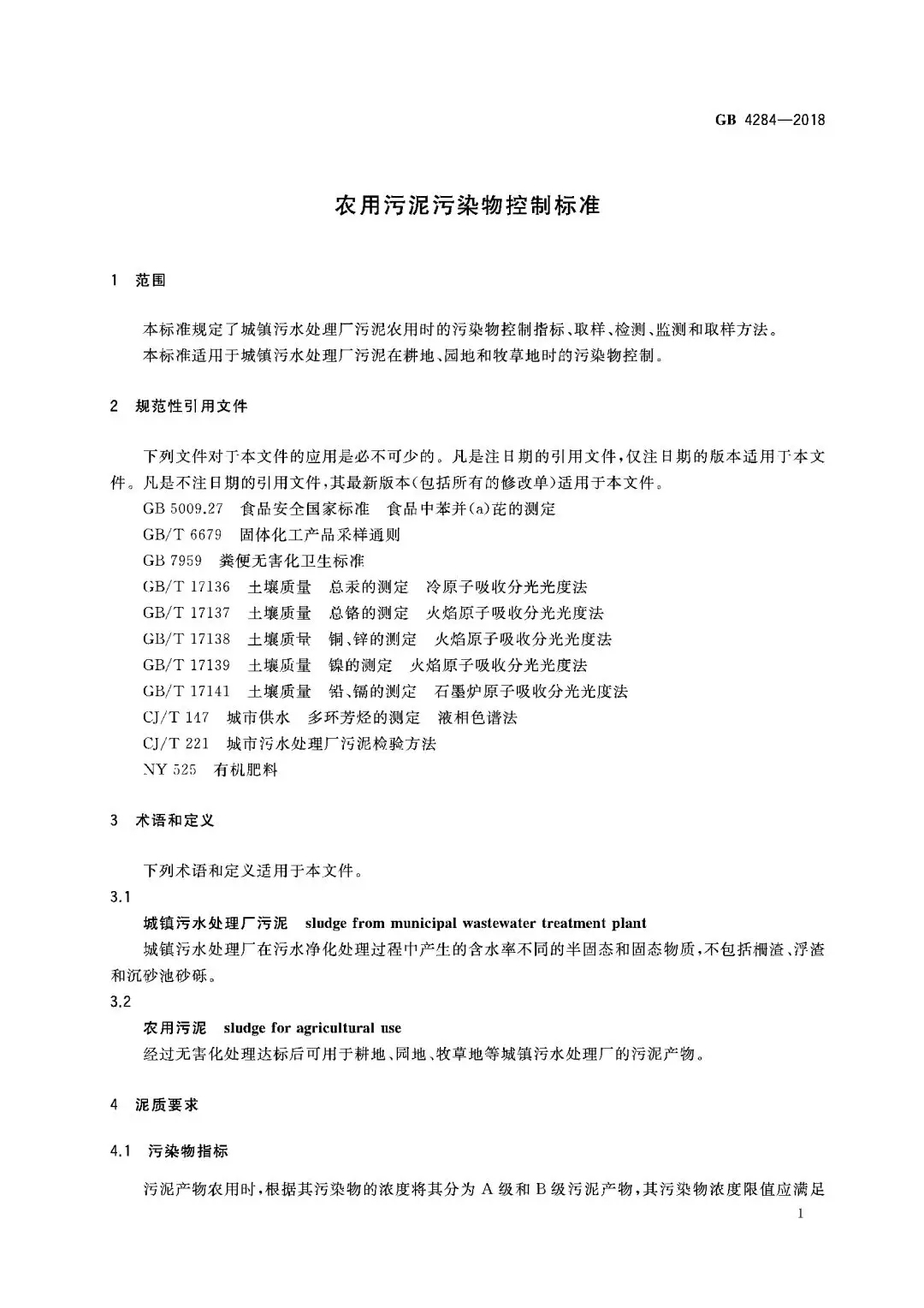 ——修改了污泥產(chǎn)物的污染物濃度限值(見4.1,1984年版的1.1);