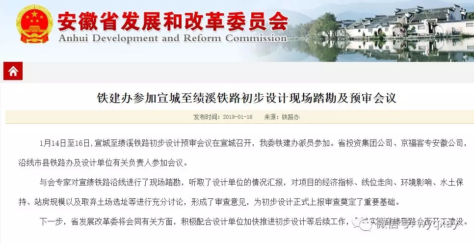 據(jù)省發(fā)改委鐵建辦消息,1月14日至16日,宣城至績(jī)溪鐵路初步設(shè)計(jì)預(yù)審會(huì)議在宣城召開(kāi),該委鐵建辦派員參加。省投資集團(tuán)公司、京福客專(zhuān)安徽公司,沿線(xiàn)市縣鐵路辦及設(shè)計(jì)單位有關(guān)負(fù)責(zé)人參加會(huì)議。