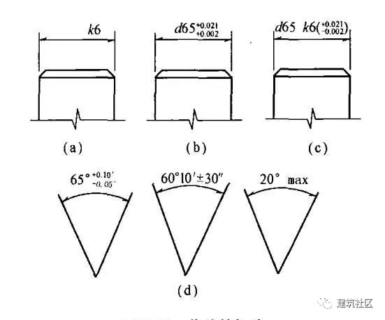 5)角度公差的標注同線性尺寸公差[圖2-63(d)]。