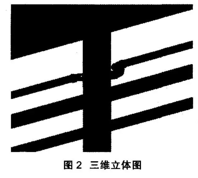 (3)進(jìn)行位置檢查,包括新繪制構(gòu)件與原有構(gòu)件、新構(gòu)件之間的碰撞檢測,在平面和三維立體條件下轉(zhuǎn)換查看(見圖2)。