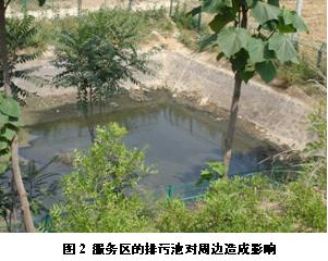3、服務區(qū)場地技術層面存在的問題,一是運營中產(chǎn)生的廢棄物(包括廢水、生活垃圾)缺少必要的配套處理設施,導致服務區(qū)周邊污染;二是場地排水缺乏設計,由于區(qū)內(nèi)硬質(zhì)地面多,暴雨時容易造成局地暴雨徑流,而雨水本可以充分利用,彌補服務區(qū)自打井時常供水不足的問題,這在干旱、半干旱地區(qū)尤為重要(如圖2所示)。