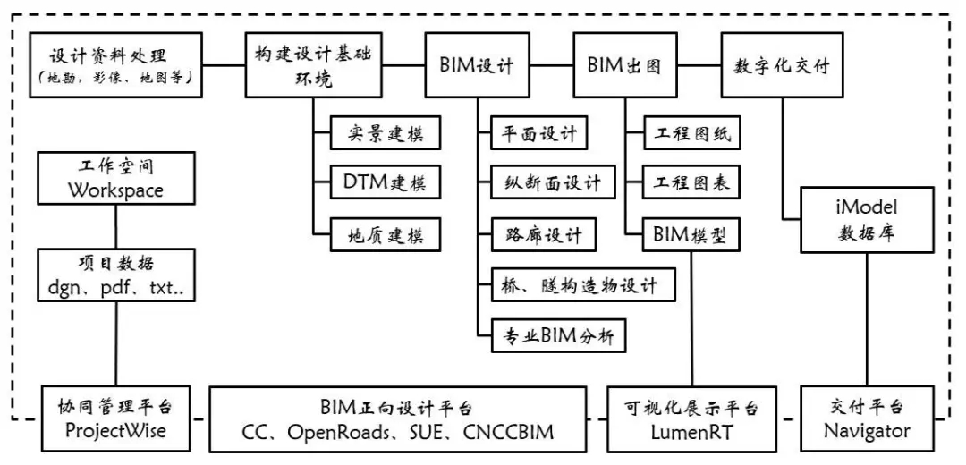 中交一公院以梅觀項目為依托,項目組通過深入研究和探索形成了大型復(fù)雜市政項目BIM正向設(shè)計解決方案。建立了精準(zhǔn)的地質(zhì)、地形、實景、地下管網(wǎng)等三維BIM模型,并集成融合構(gòu)建了全新三維可視化設(shè)計基礎(chǔ)環(huán)境;通過研發(fā)CNCCBIM系列軟件,創(chuàng)新性地完成了BIM正向設(shè)計,實現(xiàn)了基于BIM模型的自動出圖,通過可視化展示平臺動態(tài)展示項目效果,革新設(shè)計手段和展示方式;探索數(shù)字化交付平臺,實現(xiàn)了設(shè)計成果的數(shù)字化交付。