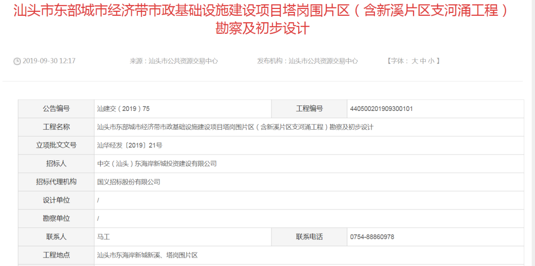 據市公共資源交易中心消息,市東部城市經濟帶市政基礎設施建設項目塔崗圍片區(含新溪片區支河涌工程)勘察及初步設計目前正在進行公開招標。