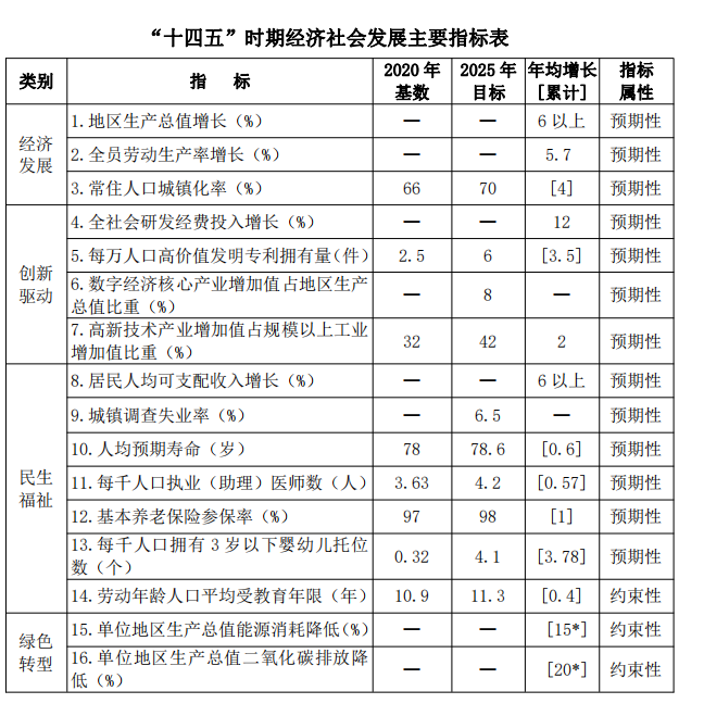 ——經(jīng)濟(jì)質(zhì)量效益顯著提升。京津冀協(xié)同創(chuàng)新共同體建設(shè) 縱深推進(jìn),高質(zhì)量發(fā)展體系更加完善,科技進(jìn)步貢獻(xiàn)率明顯上 升,產(chǎn)業(yè)基礎(chǔ)高級(jí)化、產(chǎn)業(yè)鏈現(xiàn)代化水平大幅提升,農(nóng)業(yè)基礎(chǔ) 更加穩(wěn)固,實(shí)體經(jīng)濟(jì)、先進(jìn)制造業(yè)、數(shù)字經(jīng)濟(jì)加快發(fā)展,現(xiàn)代 服務(wù)業(yè)高質(zhì)量提升。綜合經(jīng)濟(jì)實(shí)力和政府財(cái)力再上新臺(tái)階,全市生產(chǎn)總值、一般公共預(yù)算收入年均增長分別達(dá)到 6%以上、 10.6%,總量分別達(dá)到 8000 億元、1000 億元,省會(huì)首位度進(jìn)一 步彰顯,區(qū)域中心城市輻射帶動(dòng)能力和城鄉(xiāng)區(qū)域發(fā)展協(xié)調(diào)性明 顯增強(qiáng)。