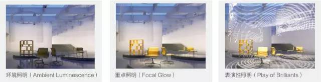 照明的三種基本功能分別是環(huán)境照明(Ambient Luminescence)、重點(diǎn)照明(Focal Glow)和表演性照明(Play of Brilliants)。