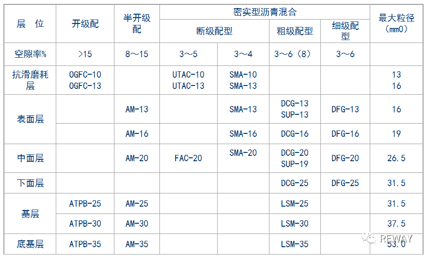 (1)各級公路均宜選用半剛性材料做基層、底基層。為減少水損害和低溫裂縫,對水泥穩(wěn)定粒料類,石灰、粉煤灰穩(wěn)定粒料類的上基層,其混合料級配組成設計宜用骨架密實型結構,以提高半剛性基層的抗沖刷、抗開裂、抗凍的性能,并可減少表面浮漿,利于層間緊密結合。