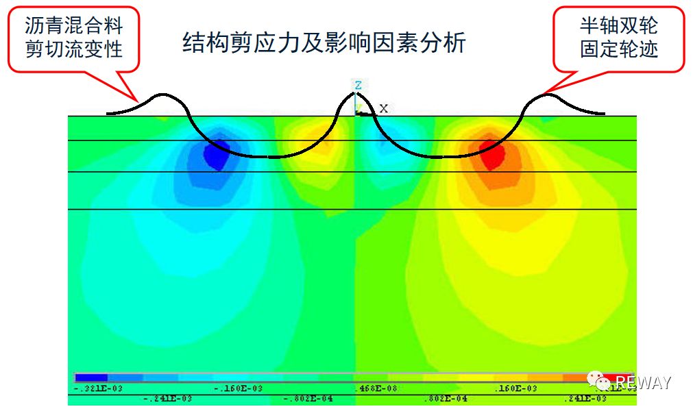 (4)加鋪瀝青面層應進行剪切應力驗算,以避免面層出現(xiàn)車轍、波浪、推擠、滑移和剪裂等破壞。