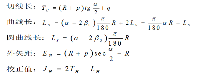(三)設有緩和曲線的平曲線主點樁技術代號