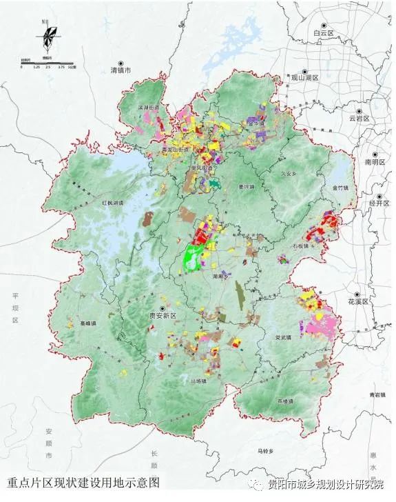 七區:七個功能區‘’包括清鎮-金華、貴安北部新城、馬場科技新城、石板、花溪大學城五大產城綜合功能區,以及久石麥文旅綜合功能區和高峰旅游配套功能區。
