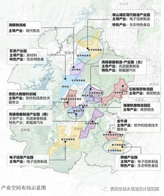 現代服務業:按照全市物流布局,清鎮物流園與貴安新區湖潮鐵路貨運樞紐是連接城市內外的重要一級物流節點,石板商貿物流為二級物流節點,軟件和信息技術服務業主要布局在大學城及科創城。