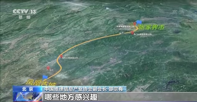 中國(guó)地理信息產(chǎn)業(yè)協(xié)會(huì)副會(huì)長(zhǎng) 邵宗有:比如我們要去張家界旅游,通過(guò)它的高空數(shù)據(jù),就可以大致地瀏覽一下整個(gè)張家界景區(qū),哪些地方感興趣,你可以設(shè)計(jì)出旅游的路線。