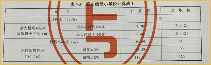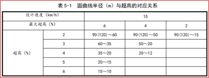 《規范》表5-1 圓曲線半徑(m)與超高的對應關系