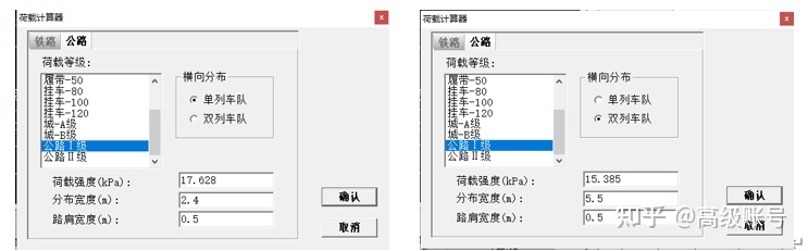 今后設(shè)計(jì)工作中:(1)對(duì)于邊坡穩(wěn)定計(jì)算,直接選擇公路I級(jí)-單列車(chē)隊(duì)或雙列車(chē)隊(duì)都可,分布位置距路基邊緣一個(gè)土路肩寬度比較科學(xué)合理,因?yàn)檐?chē)輛橫向分布列數(shù)對(duì)高邊坡穩(wěn)定系數(shù)影響不大;(2)對(duì)于擋墻計(jì)算,直接選擇“2004路基規(guī)范擋土墻車(chē)輛車(chē)載”,軟件會(huì)根據(jù)擋墻高和填土容重自動(dòng)計(jì)算換算土柱高度,與規(guī)范規(guī)定一致;(3)對(duì)于瀝青路面結(jié)構(gòu)設(shè)計(jì)驗(yàn)算,無(wú)需對(duì)行車(chē)荷載做過(guò)多考慮,因?yàn)樾熊?chē)荷載主要影響路面結(jié)構(gòu)的力學(xué)計(jì)算,而這已在HPDS里內(nèi)置的計(jì)算程序完成了。
