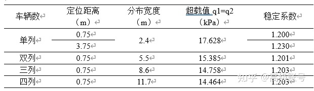 可見(jiàn)車(chē)輛數(shù)對(duì)穩(wěn)定系數(shù)的影響不大,這與《路基路面工程》中“行車(chē)荷載對(duì)較高邊坡的穩(wěn)定性較小”一致。而車(chē)輛分布在硬路肩外邊緣時(shí)較不利。故在后面的設(shè)計(jì)工作中,個(gè)人認(rèn)為直接取公路I級(jí)單列或雙列都可以,定位距離取土路肩寬度較合適。因?yàn)闀?huì)出現(xiàn)車(chē)輛停在硬路肩上的情況(這種情況對(duì)于穩(wěn)定較不利)。