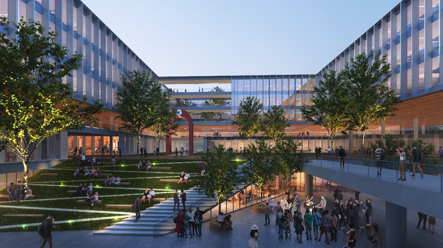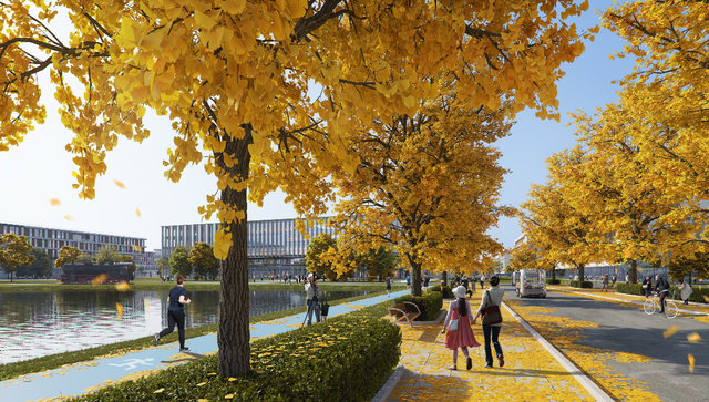 打造以學(xué)科貫通為核心的研究型校園,是北交大雄安校區(qū)規(guī)劃設(shè)計的重點。規(guī)劃方案設(shè)計了一條校園“學(xué)術(shù)中軸”,公共教學(xué)、實驗、研究等功能一應(yīng)俱全,可承載三大一流學(xué)科群和兩大基礎(chǔ)學(xué)科建設(shè)。該校雄安校區(qū)還以交大校訓(xùn)和飲水思源的傳統(tǒng)為名,規(guī)劃了三大廣場:思源、知行、天佑,打造了新明湖水系和24小時開放書院全時交流共享空間。