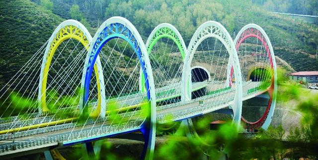 沿線地形復(fù)雜,施工場(chǎng)地受限,橋梁、隧道數(shù)量多,橋隧比達(dá)56%,局部路段橋隧比高達(dá)90%以上,其中松山特長隧道長9.2km,為華北地區(qū)最長公路隧道。