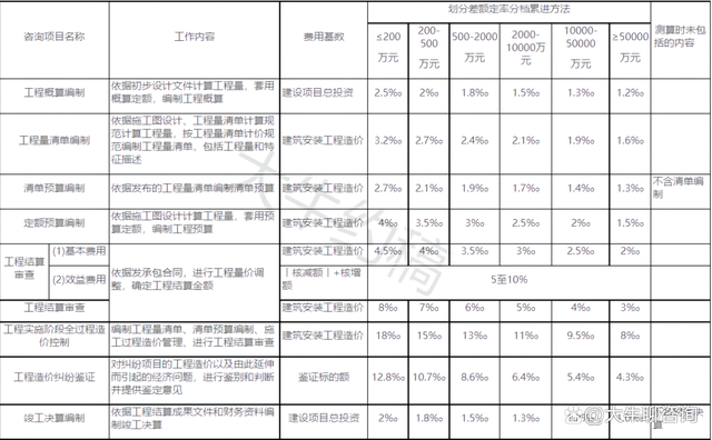 1、本表收費以單項工程為基數(shù),實行差額定率累進計費;