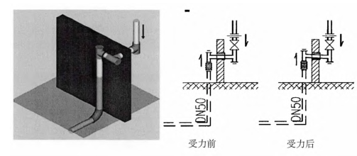 建筑的沉陷對(duì)煤氣管線的結(jié)構(gòu)設(shè)計(jì)有很大的影響。高層建筑因其自身的自重,其沉陷對(duì)其的作用不可忽略,而沿其壁面鋪設(shè)的煤氣管線,在進(jìn)行結(jié)構(gòu)的同時(shí),還應(yīng)對(duì)其沉降的負(fù)面效應(yīng)進(jìn)行分析。為了降低建筑結(jié)構(gòu)的沉陷對(duì)天然氣管線的負(fù)面作用,可以采用以下幾種方法來進(jìn)行:1)在豎管上安裝波浪式的補(bǔ)償;2)增加導(dǎo)流管道的穿壁直徑。3) 引入管水平段設(shè)置金屬軟管等。