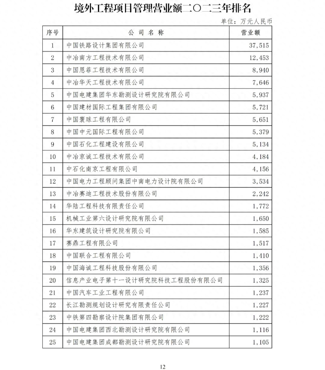 關于公布勘察設計企業工程項目管理和工程總承包營業額二〇二三年排名的通知