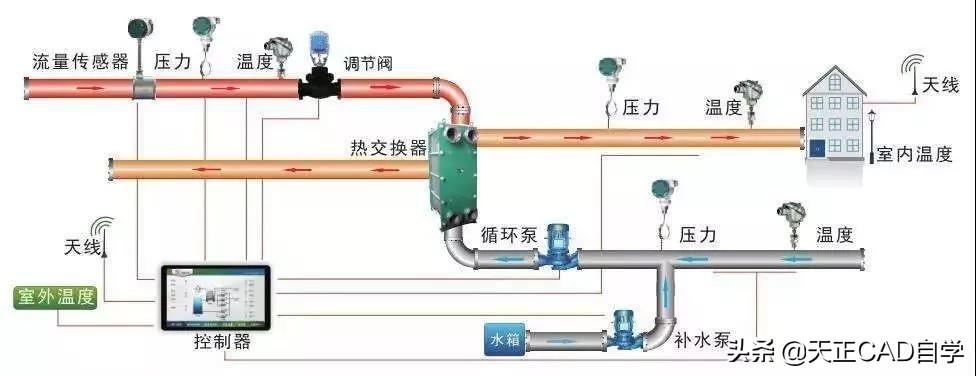 設(shè)計(jì)完成后,為促進(jìn)熱力站更好供熱,滿足人們采暖需要,還要明確工藝流程,對各項(xiàng)設(shè)備進(jìn)行科學(xué)合理安排,促進(jìn)設(shè)計(jì)水平提高。主要設(shè)備為一次網(wǎng)供水、一次網(wǎng)回水、二次網(wǎng)供水、二次網(wǎng)回水,再加上補(bǔ)水泵、止回閥、循環(huán)水泵、泄水閥、調(diào)節(jié)閥等設(shè)備,共同促進(jìn)整個(gè)熱力站有效運(yùn)行和工作。在集中供熱系統(tǒng)之中,還要合理確定熱網(wǎng)管徑,科學(xué)選擇相應(yīng)型號(hào)的設(shè)備,為集中供熱正常運(yùn)行創(chuàng)造便利,促進(jìn)供熱效果提升,更好滿足人們?nèi)詹膳枰?/p>