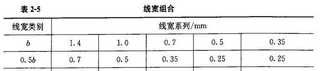2)每張圖上的圖線線寬不宜超過3種。基本線寬((b)應(yīng)根據(jù)圖樣比例和復(fù)雜程度確定。線寬組合宜符合表2-5的規(guī)定.