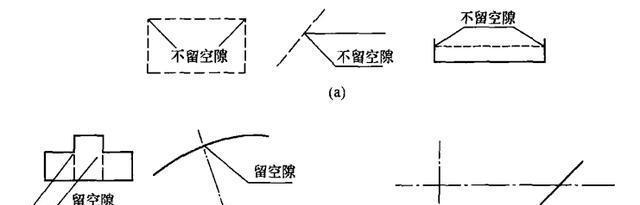 ②當(dāng)實(shí)線的延長線為虛線時(shí),應(yīng)留空隙,見圖2-4(b).