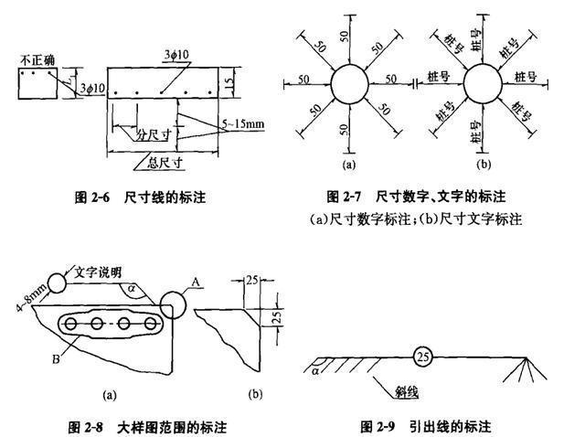 (5)尺寸數(shù)字及文字書寫方向應(yīng)按圖2-7標(biāo)注。