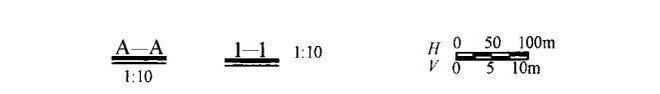 當(dāng)同一張圖紙中的比例完全相同時(shí),可在圖標(biāo)中注明,也可在圖紙中適當(dāng)位置采用標(biāo)尺標(biāo)注。當(dāng)豎直方向與水平方向的比例不同時(shí),可用V表示豎直方向比例,用H表示水平方向比例,見圖2-5(b),