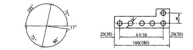 1)連續(xù)排列的等長尺寸可采用“間距數(shù)乘間距尺寸”的形式標(biāo)注(圖2-13),