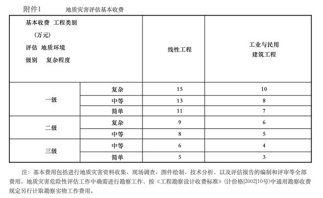 附件1:地質(zhì)災(zāi)害評估基本收費