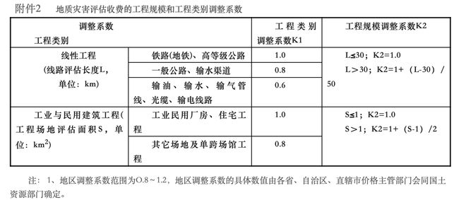 附件2:地質(zhì)災(zāi)害評估收費的工程規(guī)模和工程類別調(diào)整系數(shù)