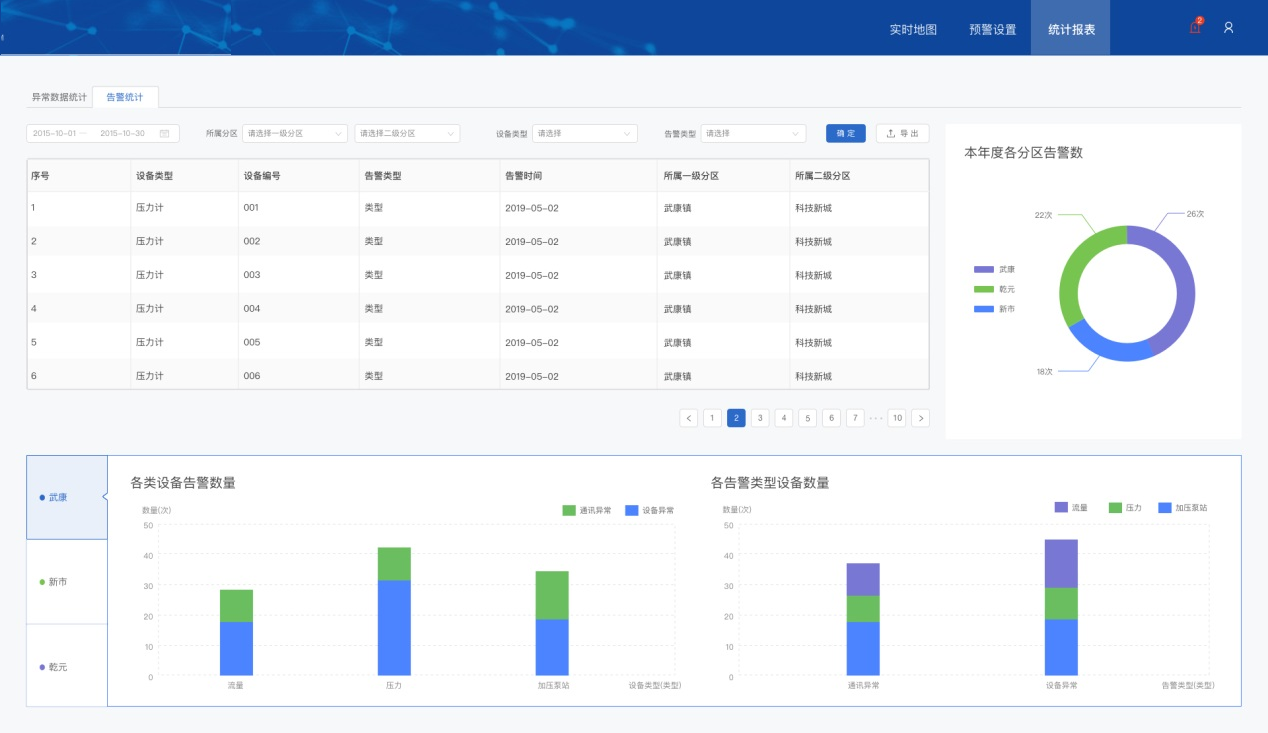 根據中控采集數據如果測壓點低于臨界值,自動發出報警。