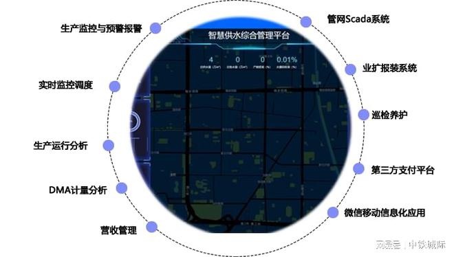 中鐵城際智慧供水平臺(tái)介紹平臺(tái)運(yùn)用BIM、GIS、IOT(分布式系統(tǒng)、大數(shù)據(jù)分析、GIS查詢(xún)與服務(wù)、大屏數(shù)據(jù)可視化)等新一代信息技術(shù)與水務(wù)業(yè)務(wù)深度融合,通過(guò)充分挖掘數(shù)據(jù)價(jià)值,統(tǒng)網(wǎng)管控消除信息孤島,監(jiān)測(cè)收集—建模分析—智能預(yù)警—應(yīng)對(duì)策略,構(gòu)建城市水務(wù)物聯(lián)網(wǎng)、城市統(tǒng)管一張圖,保障水務(wù)設(shè)施安全、高效、科學(xué)運(yùn)行。
