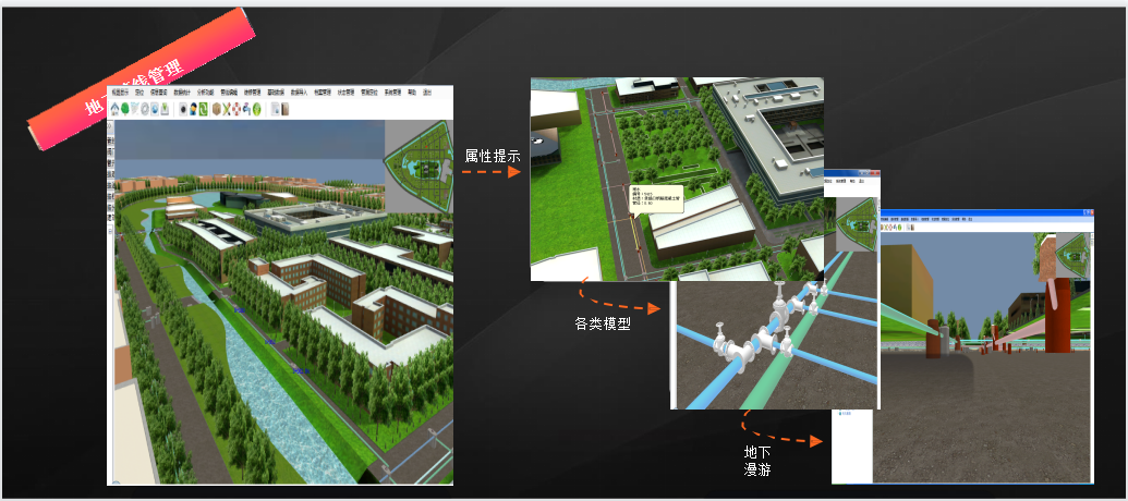 2.實(shí)時(shí)掌握各種管線的分布以及管理維護(hù)進(jìn)度,避免出現(xiàn)盲目開挖造成管線損失。改善管線維護(hù)效率,提高市行政中心南北院規(guī)劃管理水平,為市行政中心南北院突發(fā)事件提供輔助決策。