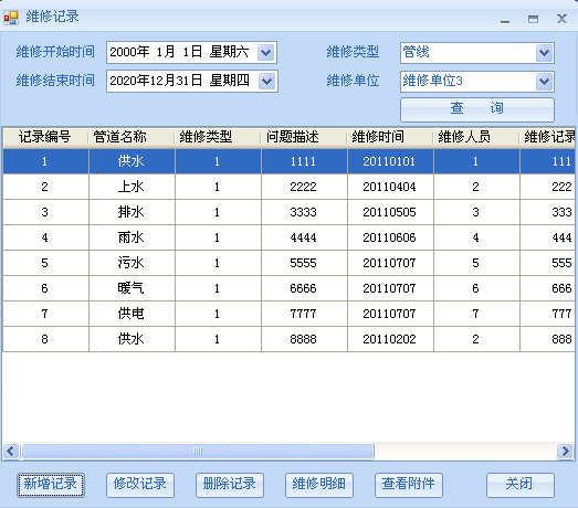 4.對(duì)各種管線的維護(hù)信息做到及時(shí)統(tǒng)計(jì),使管理人員能及時(shí)掌握管線的運(yùn)行情況,對(duì)管線進(jìn)行動(dòng)態(tài)維護(hù)和管理。 實(shí)現(xiàn)各種管線管理維護(hù)的績(jī)效分析(質(zhì)量、效率、成本)。