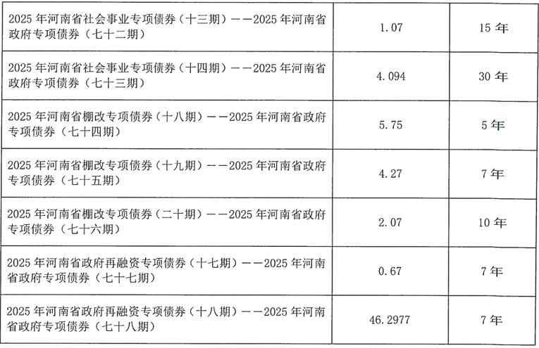 2025年河南省政府專項債券(七十八期)擬發行金額46.2977億元,用于償還2020年河南省政府再融資專項債券(三期)-2020年河南省政府專項債券(四十期)的部分本金。